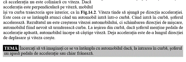 O mentiune speciala merita "explicatia" miscarii unui automobil pe o traiectorie curbilinie, care este colosala: