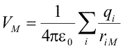 Expresia potentialului este asemanatoare cu expresia intensitatii cimpului creat de aceasta sarcina. Singura diferenta este ca distanta r de la numitor este, pentru potential, la puterea 1. Potentialul electric creat de o sarcina punctuala merge invers proportional cu distanta pina la sarcina, cimpul electric merge invers proportional cu patratul acestei distante. Folosind principiul superpozitiei si relatia intre cimp si potential, se poate demonstra ca potentialul produs in punctul M de un sistem de sarcini punctuale se obtine din insumarea potentialelor produse in acel punct de fiecare sarcina in parte.